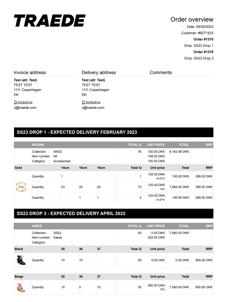 Note that if you use drops the order overview is divided into sections by drop. It is recommended to add delivery dates to your drops, so that your customers can easily see approximately when the goods are arriving.